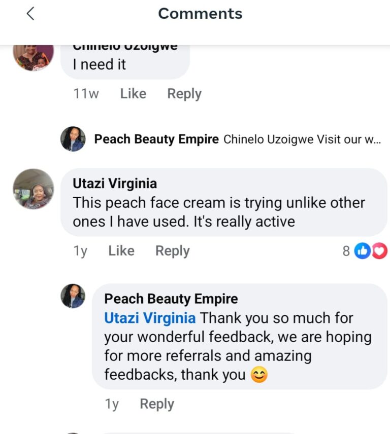 YOU DESERVE THAT FEELING OF CONFIDENCE, KNOWING THAT YOUR FACE IS FLAWLESS AND THAT’S WHAT PEACH FACE CREAM IS SURE TO GIVE YOU.